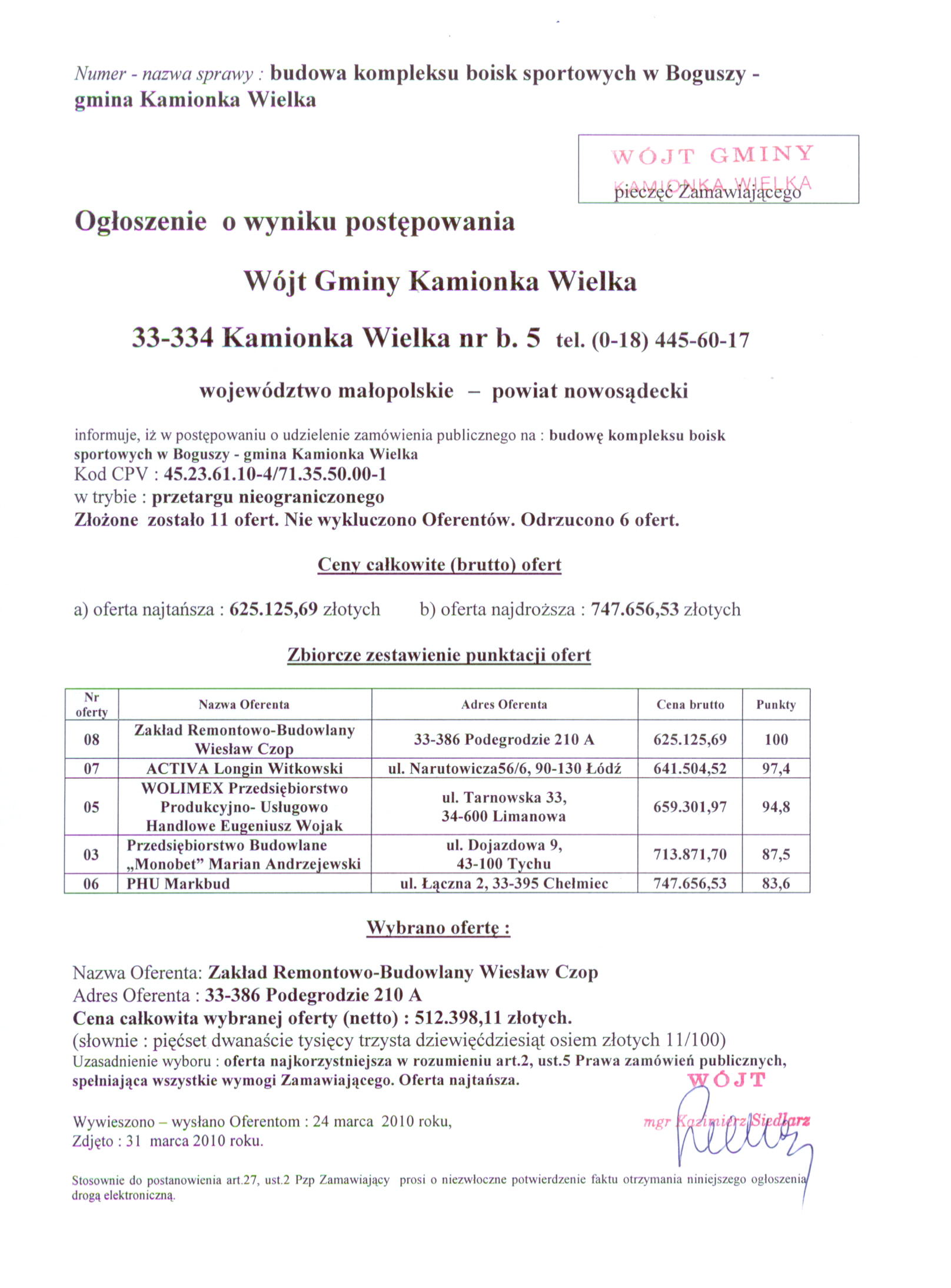Przetarg 06.04.2010r.